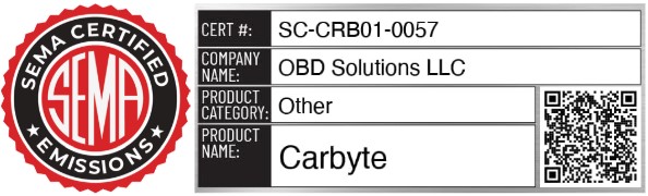 Carbyte is SEMA certified, meaning it meets industry standards for quality and safety. It won’t affect your vehicle’s emissions testing or compliance. We recommend that you remove Carbyte before getting your emissions tested because the emissions facilities will need access to your OBD-II port while testing your vehicle.